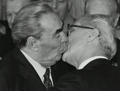 Le baiser de Brejnev et Honecker pour le 20° anniversaire de la DDR ( photo originale de M Bossu)
